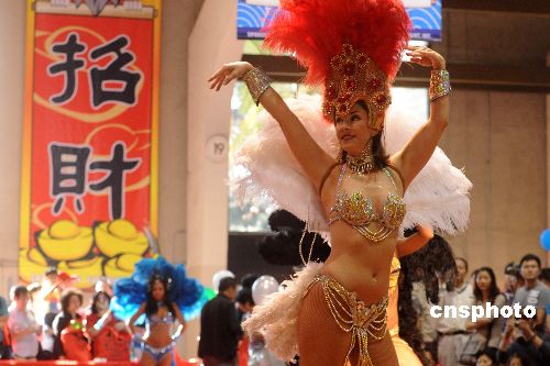 桑巴熱舞為洛杉磯華人“廟會”助興。中新社發(fā) 張煒 攝