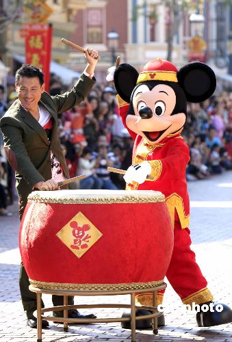 圖:張學(xué)友與卡通米奇香港迪士尼為來賓賀新年