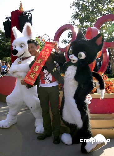 圖:張學(xué)友與卡通米奇香港迪士尼為來賓賀新年(2)