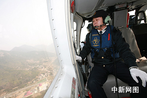 浙江海事局第一巡查執(zhí)法支隊執(zhí)法人員在空中巡視執(zhí)法。 黃正勝 攝