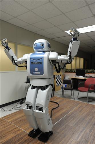 會(huì)跳舞的機(jī)器人:韓國(guó)科學(xué)技術(shù)研究院機(jī)器人研究小組劉凡材博士開發(fā)的機(jī)器人“MARU”,可同時(shí)轉(zhuǎn)動(dòng)上下肢,隨著音樂(lè)節(jié)奏跳舞。