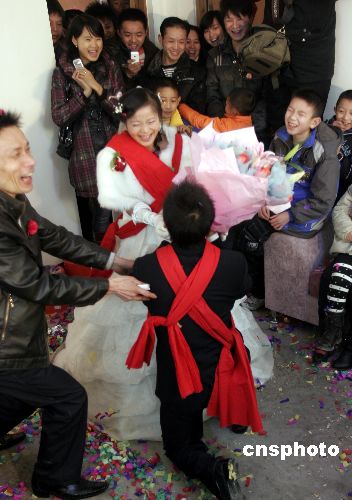 圖:新年到 四川災區(qū)村民蓋起新房娶新娘(3)