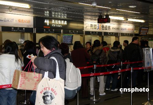 圖:臺灣高鐵購票點出現(xiàn)排隊購票人龍