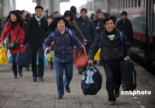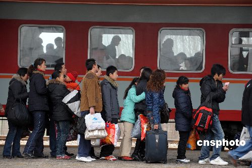 1月31日,安徽省亳州火車站迎來節(jié)后客流高峰。依照民間“三六九往外走”的習(xí)俗,大批回鄉(xiāng)過年的民工已開始返城,一些外出務(wù)工者再次與家人告別,開始新一年的打工生活。中新社發(fā) 張延林 攝
