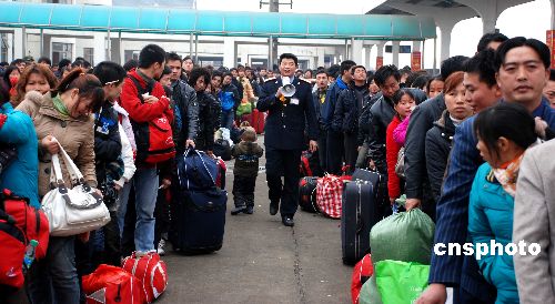1月30日,江西樂平市火車站迎來了以外出務工的農民工為主的客流高峰。中新社發(fā) 朱定文 攝