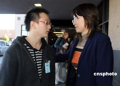 當(dāng)?shù)貢r間一月三十一日下午,中國駐洛杉磯副總領(lǐng)事黃曉健(右)在內(nèi)華達(dá)大學(xué)醫(yī)療中心和中國游客小洪(左)交談。小洪是沒有參加大峽谷一日游而躲過一劫的五名中國游客之一,而小洪的父母受傷嚴(yán)重,尤其是母親傷勢危重。中國游客當(dāng)?shù)貢r間一月三十日下午在美國亞利桑那州的九十三號公路上遭遇嚴(yán)重車禍,造成七人遇難、十人受傷。中新社發(fā) 張煒 攝