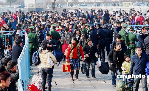 2009年1月31日,旅客們正在南昌鐵路局九江火車站準(zhǔn)備上車。隨著春節(jié)長(zhǎng)假接近尾聲,南昌鐵路局客流大幅增長(zhǎng)。1月31日,該局發(fā)送旅客42.6萬人,同比增長(zhǎng)18.79%。為應(yīng)對(duì)節(jié)后客流高峰,南昌鐵路局開行臨客73列,臨客開行列數(shù)為2009年春運(yùn)以來最高值。