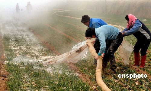 河南洛陽自2008年10月下旬以來,沒下過一場“透雨”,降水量較常年同期減少近八成,全市農(nóng)作物受旱面積達260萬畝,其中有30萬畝麥苗枯黃。13座大中型水庫蓄水量不足常年的一半。7.3萬人飲水嚴重困難,1.1萬人靠送水解決飲水問題。全市先后投入抗旱資金2500余萬元,抓緊抗旱。