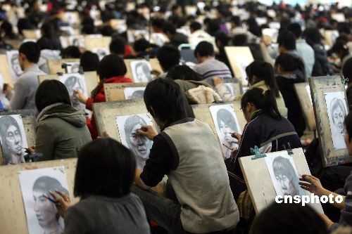 2月5日上午8點(diǎn)整,山東省2009年藝術(shù)類考生藝術(shù)專業(yè)考試正式拉開帷幕。山東工藝美術(shù)學(xué)院由于考生人數(shù)眾多,將考場(chǎng)搬進(jìn)了20000余平方米的濟(jì)南市舜耕會(huì)展中心,讓近7000多名美術(shù)類專業(yè)考生在展廳內(nèi)同時(shí)參加考試,一展身手。