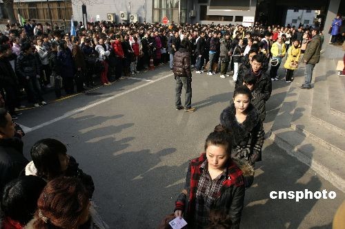 2月6日,最受社會關(guān)注、也是北京電影學(xué)院競爭最激烈的表演專業(yè)本科招生進入初試的第二天。由于2009年北影首次要求考生“素顏”應(yīng)考,因此相比往年,現(xiàn)場濃妝艷抹、染著黃頭發(fā)、奇裝異服的考生并不多,個別化了淡妝的男女考生被要求先到衛(wèi)生間洗臉后才能進考場。據(jù)悉,雖然2009年的招生人數(shù)由往年的30人增加到75人,但面對4234名報考者,淘汰率仍高達98.2%。表演專業(yè)初試將持續(xù)4天,2月11日上午公布參加復(fù)試人員的名單。