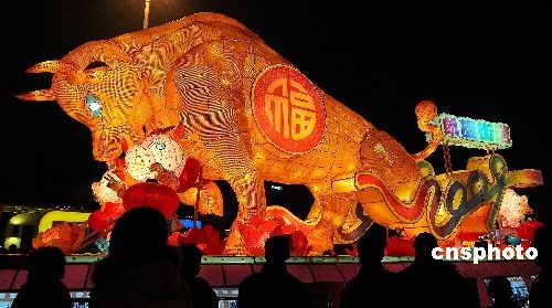 2月8日晚上,浙江杭州各文化廣場的“牛”燈都亮起來了,吸引了眾多市民前來觀看。中新社發(fā) 引煒 攝