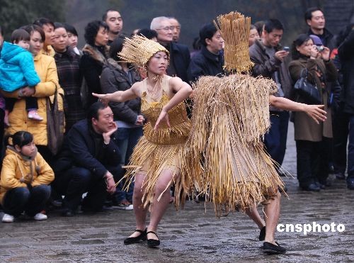 2月9日,湖北省恩施土家族苗族自治州土司城內(nèi),民間藝人通過表演擺手舞、茅古斯舞、采蓮船,唱響抬工號子、山民歌,以本民族最傳統(tǒng)的民俗慶祝元宵佳節(jié),祈福新年風(fēng)調(diào)雨順、國泰民安,吸引了大批來自省內(nèi)外的游客。中新社發(fā) 沈祥輝 攝
