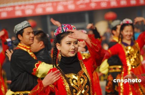 2009年2月9日,新疆塔克拉瑪干沙漠腹地邊城和田鑼鼓喧天,萬民歡騰,各族兒女身披節(jié)日的盛裝,載歌載舞,在和田市廣場舉行大型社火活動,表達和田各族人民的美好祝愿。