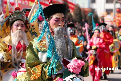 2月9日,山西陽城縣街頭,鼓聲陣陣,嗩吶聲聲,龍舞獅躍,人頭攢動(dòng)。社火耍紅了天,百姓笑開了顏,好一個(gè)紅火熱鬧的元宵節(jié)。