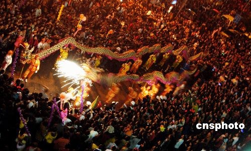 圖:數(shù)十萬泉州市民游火龍鬧元宵