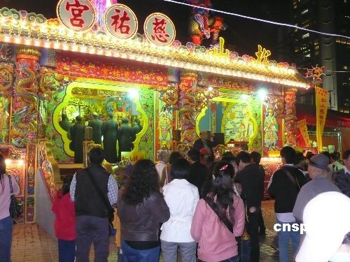臺(tái)北元宵燈會(huì)開場(chǎng),松山慈佑宮設(shè)立的燈區(qū)吸引了大量民眾前來上香,為新年祈禱。中新社發(fā) 路梅 攝