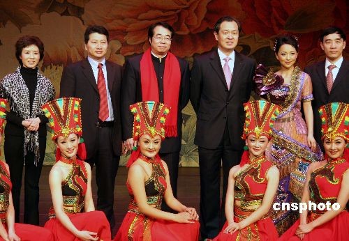 圖為國務院僑辦副主任許又聲(后排左三)、中國駐法大使孔泉(后排左四)與演職員合影。