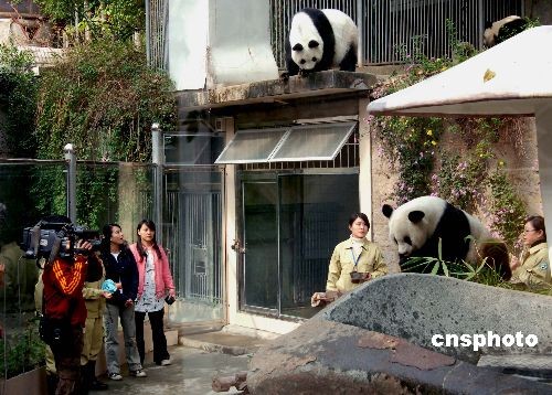 圖:臺(tái)灣電視臺(tái)攝制組聚焦福州熊貓世界