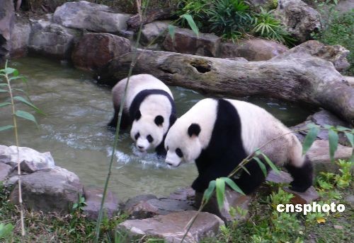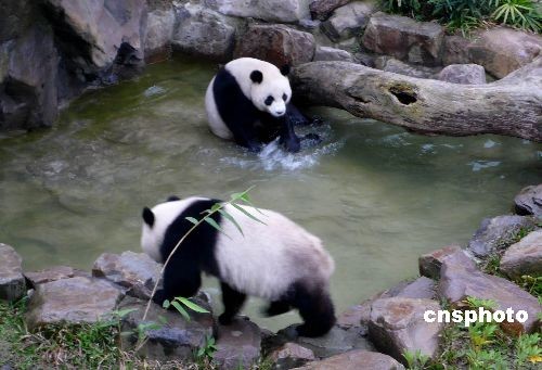 二月十四日,大陸贈臺大熊貓“團(tuán)團(tuán)”和“圓圓”首次在臺北新家的戶外展示場與游客見面,再度掀起臺灣民眾的參觀熱潮。當(dāng)天,“團(tuán)團(tuán)”“圓圓”到戶外活動的興致極好,常在草地上撒歡奔跑,“團(tuán)團(tuán)”樂山,不時爬到山坡的最高點(diǎn)俯視全場; “圓圓”喜水,不時走進(jìn)水池戲水玩耍。中新社發(fā) 路梅 攝