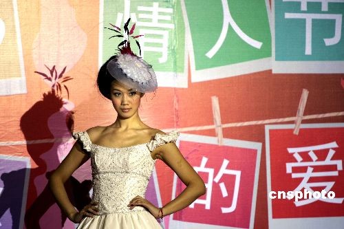 2月13日,情人節(jié)前夕,各商家紛紛想出辦法緊抓商機(jī)。某商家在商場內(nèi)為情人們奉獻(xiàn)上一場婚紗展,此展覽將持續(xù)三天,模特每天將分時段在商場T臺上為顧客展示多樣婚紗。中新社發(fā) 富田 攝