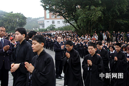 2月15日,臺(tái)灣法鼓山創(chuàng)辦人圣嚴(yán)法師追思法會(huì)暨植存在法鼓山舉行。圖為數(shù)以萬(wàn)計(jì)的信眾從臺(tái)灣各地前來(lái)法鼓山,送圣嚴(yán)法師最后一程。中新社記者 陳立宇攝