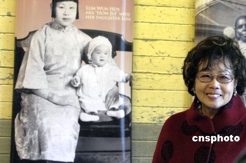 華裔移民方趙玉蓮捐出母親當(dāng)年被羈留時(shí)所用的衣物以及自己和母親的照片,盼后代不忘華人移民之艱辛。中新社發(fā) 陳鋼 攝