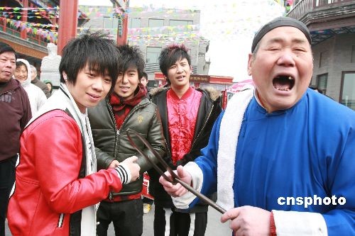 圖:花兒樂隊(duì)向“叫賣大王”學(xué)“叫賣”(4)