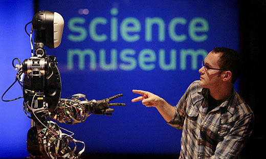 2月17日,在英國倫敦的科學(xué)博物館,一名工作人員與一個(gè)名為BERTI的機(jī)器人在玩“剪刀、石頭、布”的游戲。設(shè)計(jì)這個(gè)機(jī)器人的初衷是幫助科學(xué)家研究未來人與機(jī)器人如何互相影響。