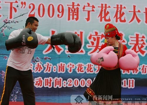 芙蓉姐姐和“芙蓉姐夫”要比武招親?“姐夫”說“俺不打女人的”。鄧昶 攝