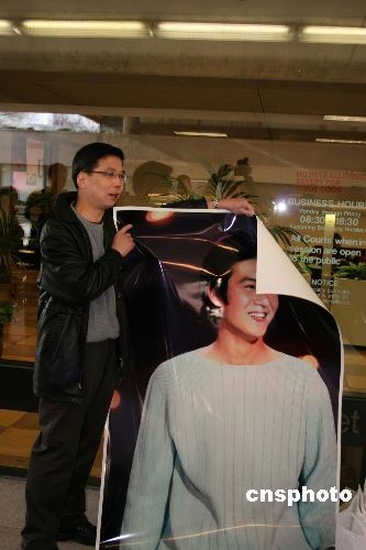 轟動(dòng)一時(shí)的香港“艷照門”男主角陳冠希23日首次在溫哥華出庭作證,一名溫哥華男子在法院門口打出大幅海報(bào),自稱是陳冠希的“粉絲”。中新社發(fā) 呂振亞 攝