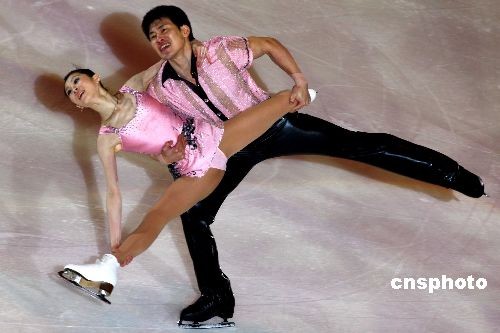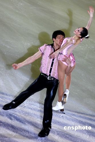 中國著名花滑組合、本屆大冬會雙人滑冠軍張丹張昊在表演中。中新社發(fā) 富田 攝