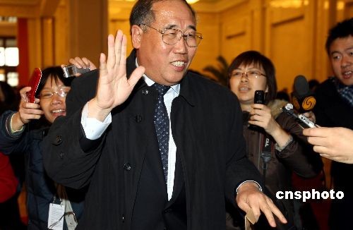 3月3日下午,國(guó)家發(fā)改委副主任解振華在參加全國(guó)政協(xié)十一屆二次會(huì)議開幕會(huì)時(shí),被媒體圍堵熱問節(jié)能減排問題。中新社發(fā) 傅丹丹 攝