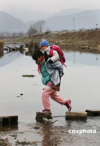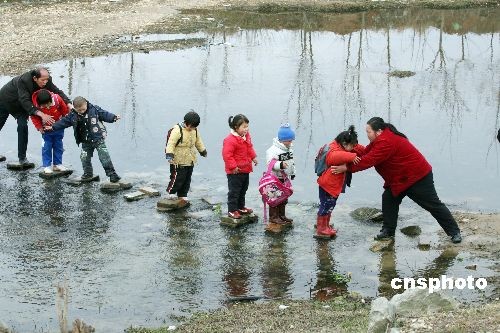 圖:300多學(xué)生每日踩石頭過(guò)河上學(xué)(2)