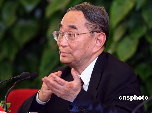 全國(guó)政協(xié)常委、著名經(jīng)濟(jì)學(xué)家厲以寧在3月6日下午舉行的全國(guó)政協(xié)十一屆二次會(huì)議記者會(huì)上說(shuō),當(dāng)前樓價(jià)居高不下,原因是地價(jià)高。他還回答了關(guān)于上調(diào)資源增值稅的說(shuō)法和提高勞動(dòng)收入在國(guó)民收入中分配比例等問(wèn)題。中新社發(fā) 宋吉河 攝