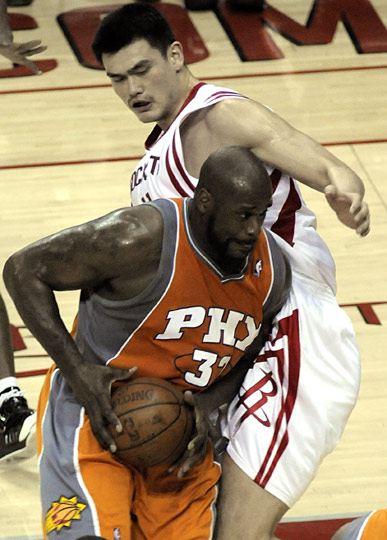 中新網(wǎng)3月7日電 北京時間7日上午,休斯頓火箭隊回到主場迎戰(zhàn)菲尼克斯太陽隊。經(jīng)過一番激戰(zhàn),火箭隊最終以116-112擊敗太陽隊,取得主場11連勝。姚明全場得到15分、13個籃板、6次助攻、2次搶斷和2次蓋帽,而“大鯊魚”奧尼爾只得到17分和5個籃板。