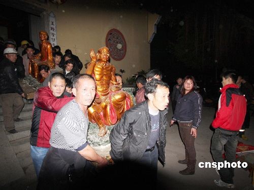 工作人員搶救菩薩。中新社發(fā) 唐海波 攝