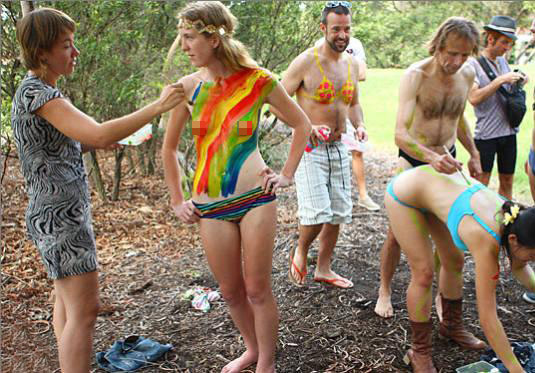 圖:彩繪、樹皮遮體蹬車 裸體自行車賽呼吁環(huán)保(3)