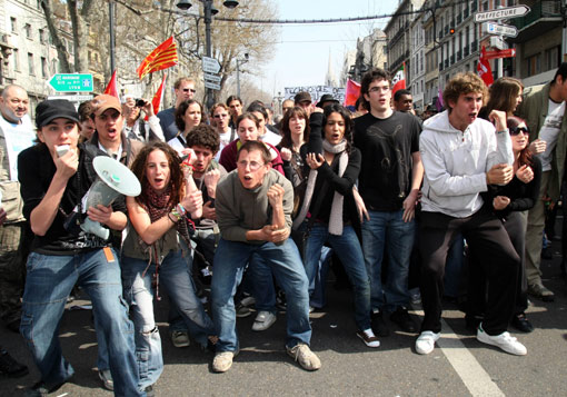3月19日法國各大工會在全國各地聯(lián)合組織罷工和示威游行等活動,抗議政府在應(yīng)對當(dāng)前經(jīng)濟(jì)危機(jī)過程中忽視勞動者權(quán)益和社會福利。