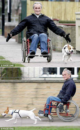 英殘疾者訓(xùn)練狗拉輪椅。據(jù)英國《每日郵報》報道,一只3歲大的杰克羅素梗每天為其殘疾主人拉輪椅,它已成為主人輪椅的小型發(fā)動機。除非遇到車輛、貓和令其感興趣的氣味,否則它不會停下來。這只名叫科迪的杰克羅素梗套著特制的挽具,每天都拉著其主人艾倫-史密斯在諾丁漢郡克利夫頓外出兜風。57歲的史密斯稱,他的這只寵物犬拉輪椅的時速可達24公里。史密斯因幼時患小兒麻痹癥而殘疾,不得不坐輪椅,史密斯49歲的妻子多娜一直負責照顧他。史密斯說:“科迪會在道路交叉處停下來,看看是否有車輛。它的唯一缺點是,如果看到了一只貓或者另一只狗,它會停下來,像老虎那樣臥著。它的肌肉很強健,獸醫(yī)說,它非常健康。”史密斯稱,令人感到奇怪的是,科迪只吃超市出售的一種品牌為“英雄”的狗糧。他說:“它不吃其它食物,我們試了所有其它食物!