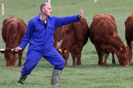農(nóng)夫?qū)δ膛4蛱珮O。“對牛彈琴”的成語大家都明白并不是一個褒義詞,但英國一個奶牛場的農(nóng)夫Rob Taverner 卻不這么認(rèn)為,每天早上都會身穿那套藍(lán)色工作服和一雙防水長靴,在他喂養(yǎng)的奶牛們面前表演太極拳。他認(rèn)為動物非常容易受到人類情感感染,太極可以讓人將一切問題拋在腦后,進入一個較好的狀態(tài),他認(rèn)為他的表演也會讓這些奶牛感到快樂,從而產(chǎn)出更多的牛奶。好像事實也證明Rob Taverner所言非虛。