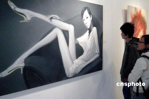 3月22日,位于北京朝陽(yáng)區(qū)的798藝術(shù)區(qū)內(nèi)中外游客絡(luò)繹不絕。作為中國(guó)當(dāng)代藝術(shù)文化展示園區(qū),這里匯集了中國(guó)當(dāng)代藝術(shù)家不同門類、派別、風(fēng)格的多元化藝術(shù)作品,呈現(xiàn)出百家爭(zhēng)鳴的繁榮景象。圖為北京798藝術(shù)區(qū)繪畫(huà)作品吸引游客。中新社發(fā) 錢興強(qiáng) 攝