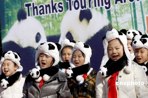 3月22日,在北京生活了9個月的8只奧運大熊貓開始起程返回四川老家,北京動物園特地舉辦了“奧運熊貓返川儀式”,吸引萬名觀眾前來依依惜別。中新社發(fā) 鄭雄增 攝