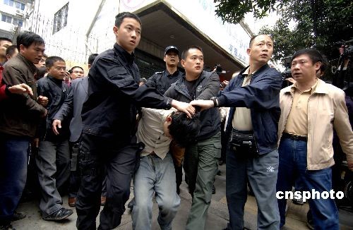 三月二十三日上午,福州警方在福州市區(qū)湖東路誠(chéng)信典當(dāng)行抓獲劫持三名人質(zhì)的嫌犯,成功解救三名人質(zhì)。這起劫持人質(zhì)事件是該典當(dāng)行的一名保安,他劫持了該典當(dāng)行的三名工作人員作為人質(zhì),具體原因還在調(diào)查之中。中新社發(fā) 王東明 攝