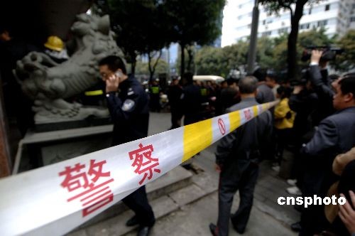 圖為警方在現(xiàn)場(chǎng)拉起警戒線。