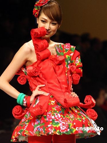 3月24日,中國國際時裝周(09/10秋冬系列)在北京隆重開幕,本屆時裝周將在D.PARK北京會所、北京飯店等主場地舉辦為期一周的專場發(fā)布、專項大賽、專題論壇等專業(yè)活動近40項,時裝周將期間將有來自國內(nèi)外的近20個知名品牌舉辦流行趨勢發(fā)布。圖為在開幕式上舉行“漢帛獎”第17屆中國國際青年設(shè)計師時裝大賽作品展示。中新社發(fā) 錢興強 攝