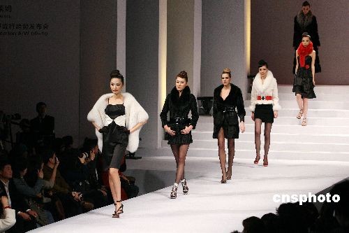 2009年3月24日,中國國際時裝周09/10秋冬系列發(fā)布會在北京拉開帷幕。當(dāng)天舉行了秋冬皮草流行趨勢發(fā)布會,皮草以性感、高貴、優(yōu)雅、陽光的風(fēng)格來詮釋本季主題,共分為時尚飛揚、舞動的裘皮精靈、傳承經(jīng)典、摩登針織四個系列。中新社發(fā) 魯谷 攝