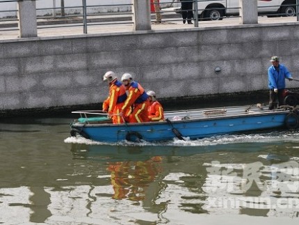 記者在現(xiàn)場(chǎng)看到,消防與水務(wù)部門(mén)已派出兩艘小艇在河道內(nèi)開(kāi)展搜尋工作。據(jù)一名工作人員向記者介紹,該河道最深處達(dá)到三四米,目前尚未發(fā)現(xiàn)該男子的蹤跡。薛驍翔 攝