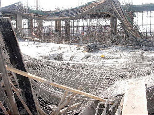 4月7日下午6:30,正在新建的朔州火車站站房工程,在一層頂板現(xiàn)澆混凝土澆注過程中,發(fā)生頂板支撐局部垮塌。7名工人受傷,其中4名輕微骨折,3名皮膚擦傷。