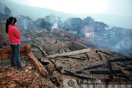 5月10日晚,廣西柳州三江侗族自治縣獨峒鄉(xiāng)知了村知了屯發(fā)生火災,68戶人家的房屋被燒毀,另有69戶房屋因救火被破拆。據(jù)當?shù)孛裾块T初步統(tǒng)計,直接經(jīng)濟損失達130多萬元。