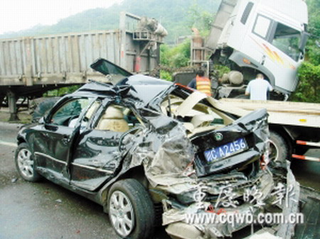 “我看到前面的車時(shí),已來不及剎車了!21日下午1時(shí),成都的郭先生駕駛牌照為“川U0195”的加長(zhǎng)貨車往成都方向行駛,此時(shí),天下著傾盆大雨,雨刮剛刮過,擋風(fēng)玻璃又被大雨打濕,視線模糊。車行至成渝高速路永川段出城方向63公里處,剛轉(zhuǎn)過一個(gè)彎道,前面一排堵塞的車輛突然進(jìn)入他的視線。
